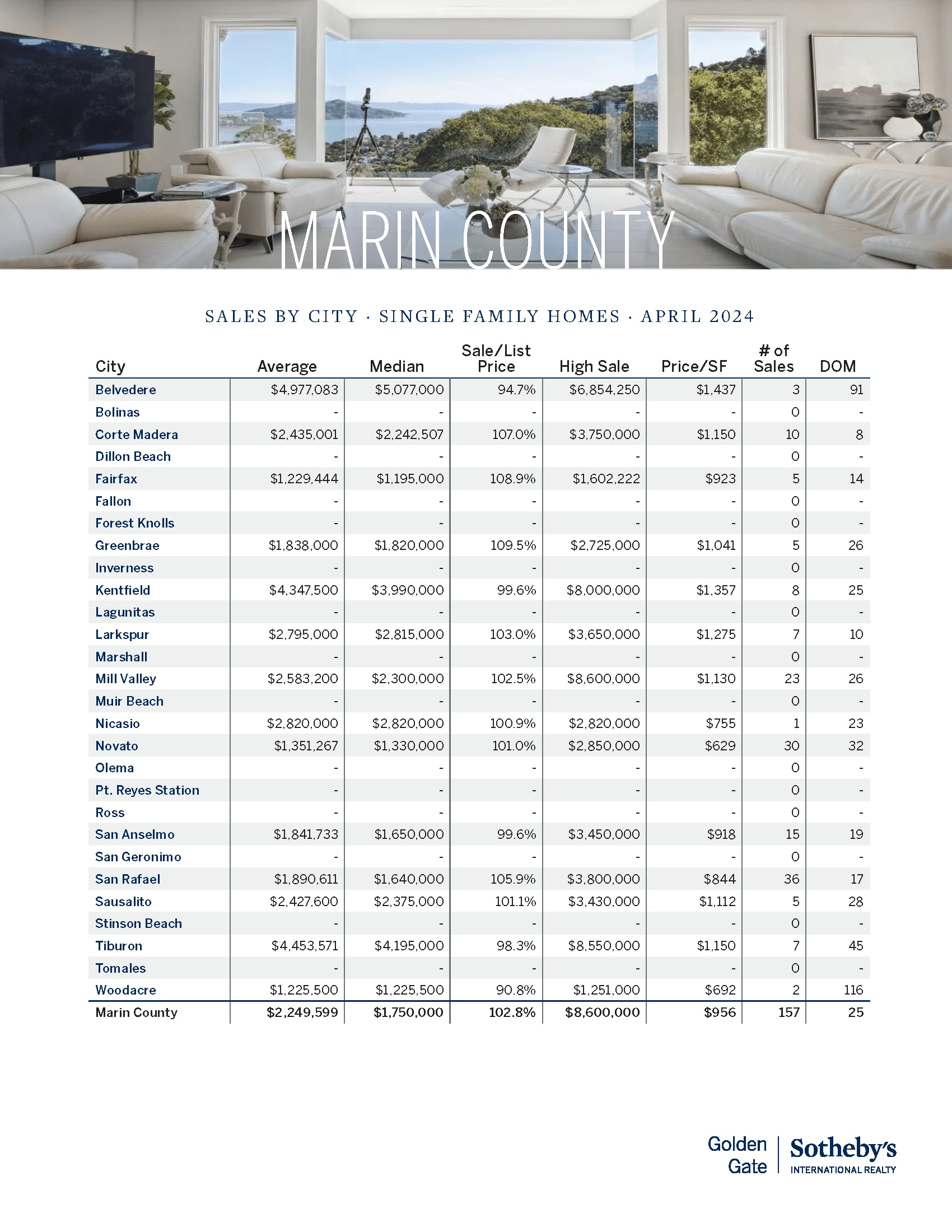 I am pleased to share with you our latest Market Report for the San Francisco Bay Area. The report begins with economic and real estate commentary presented in partnership with the Rosen Consulting Group (RCG). For the statistical report of the regional housing market, we look at the ten counties associated with the SF Bay Area, focusing primarily on detached single-family homes, with added coverage of the significant condominium market in San Francisco. Enjoy the information and insight provided in the report and I look forward to discussing the market with you.